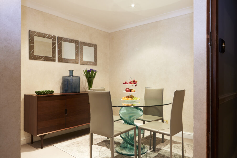- Sitting Room/Dining area: the finest furniture and furnishings, dining table seating for four, the latest Samsung 55″ 4K smart TV with Chromecast technology. Sitting room 28 m² (301 ft²). Dining area 9 m² (96 ft²).